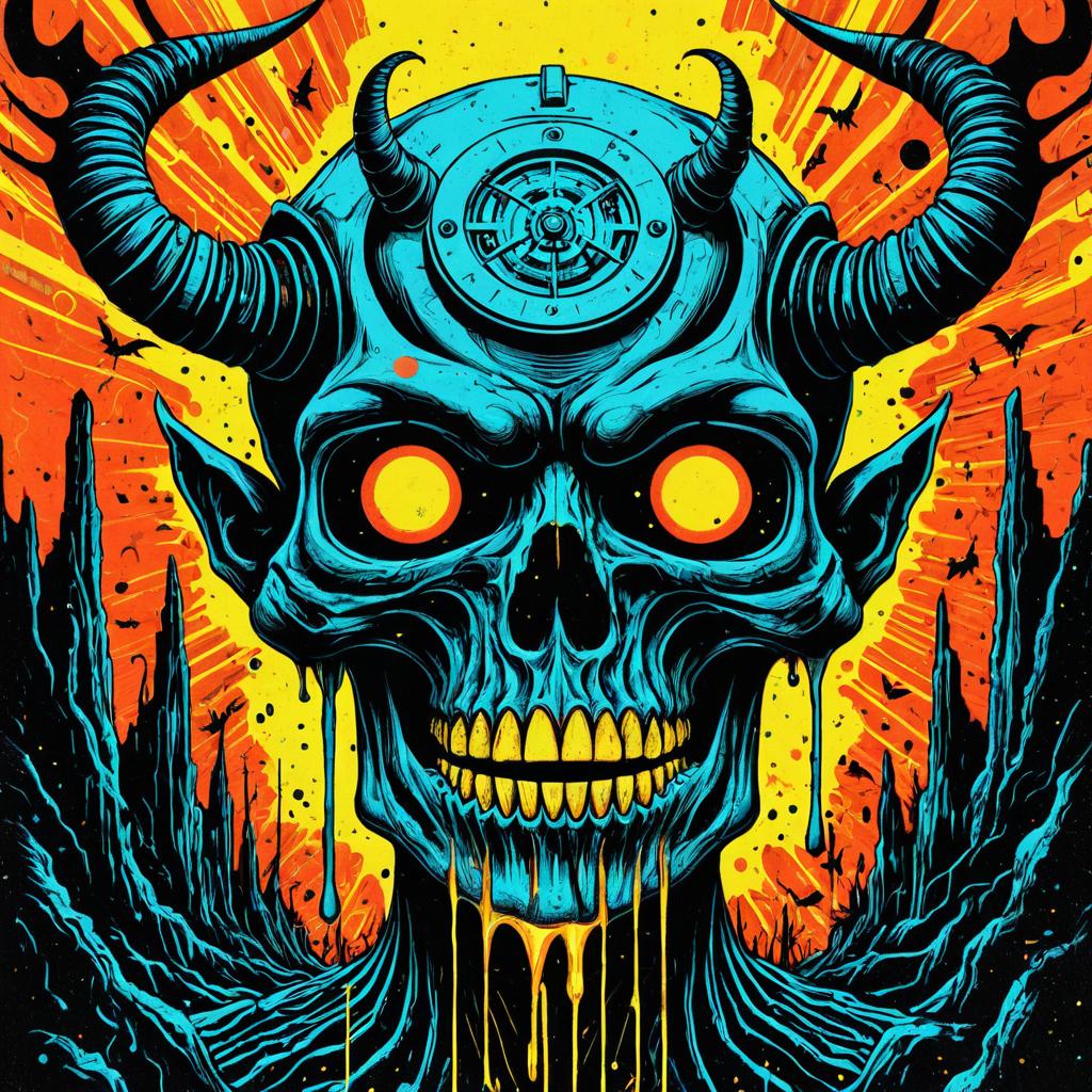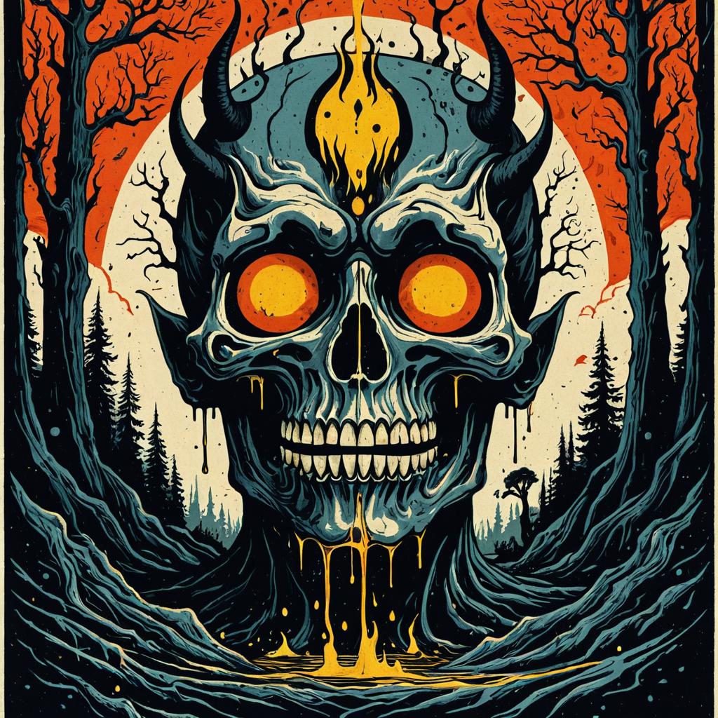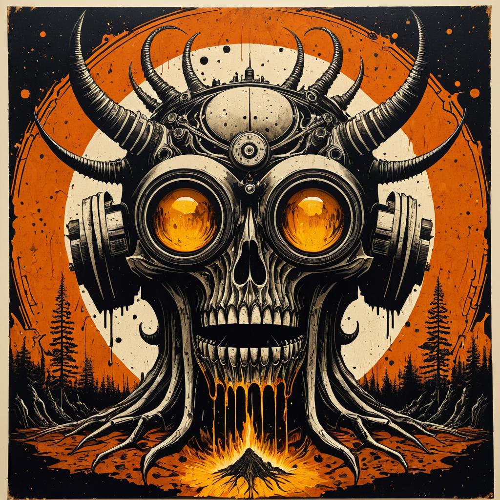 Unapologetic, Perfectcore, bizarre, freaky graphic poster, biomechanical, strong graphic lines, in the style of Behance, award-winning, extraordinary, modern, screen print, old paper background, surrealism matte background, melting oil on canvas, chrome tones, demonic in nature, parallel universe