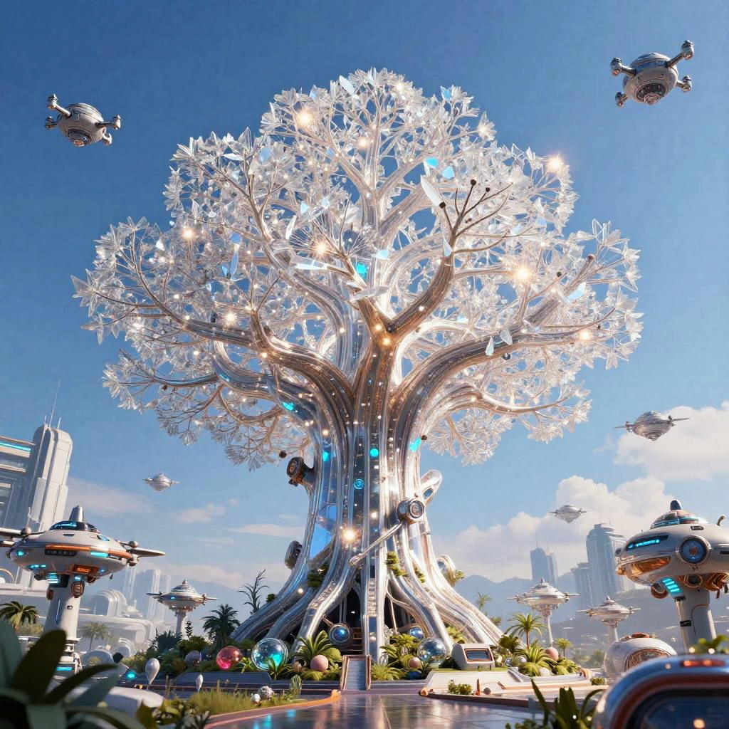 Futuristic Tree on Space Station Balcony