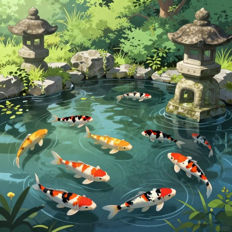 Create an expansive 'eye-level' image in the surreal, dreamlike style reminiscent of Salvador Dali, merging a tranquil Zen garden with a lively undersea realm. The overhead view unveils delicate cherry blossom petals drifting tenderly over gracefully swimming koi fish within shimmering waters. Dali-esque components like distorted timepieces and whimsical architectural forms intertwine harmoniously with Japanese elements, while the emotional spectrum of serenity and amazement weaves an enchanting visual tale.