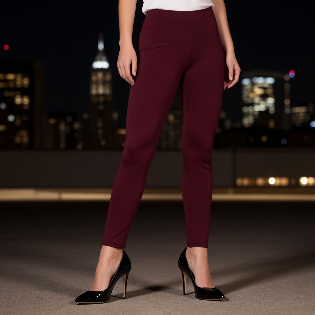 Close-up of leather pants with heels, tight fitting dark leather trousers matched with elegant high heels, soft studio lighting, fashion photography, modern and edgy vibe