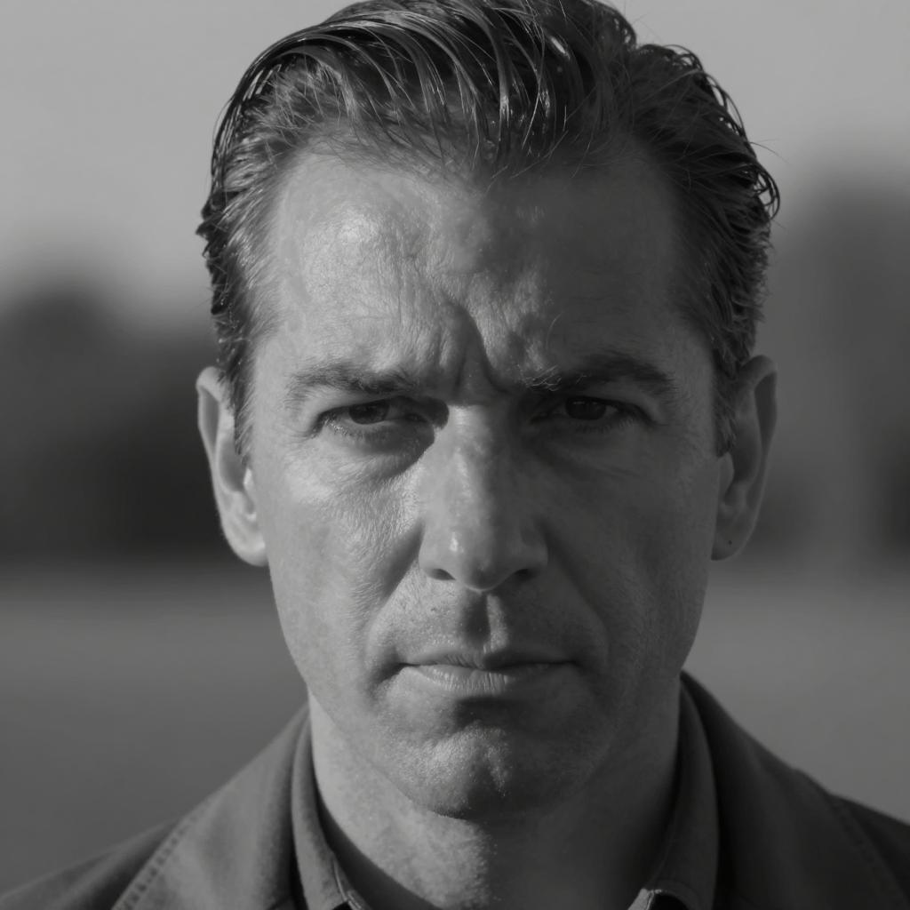 Intense Close-Up of a Middle-Aged Man