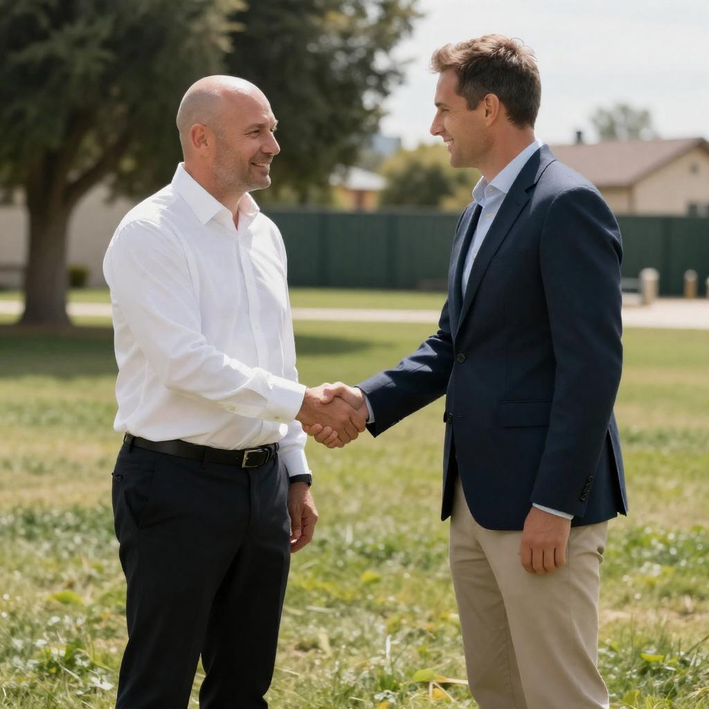 Two Men Walking in Sunlit Walkway