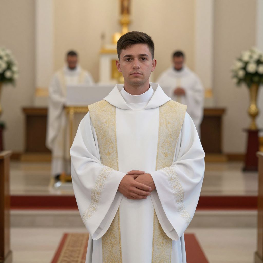 Marriage costume christian, 1boy, male focus, solo, church, priest