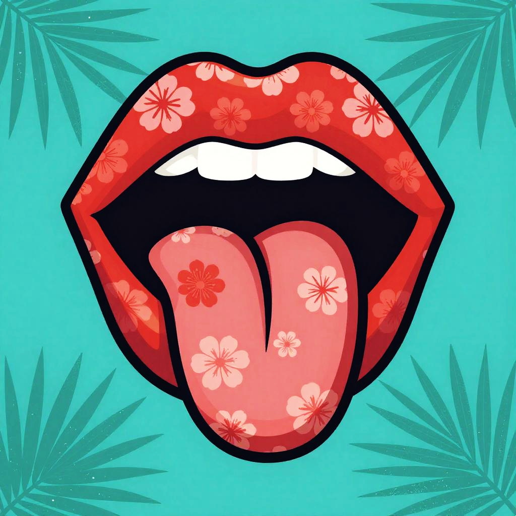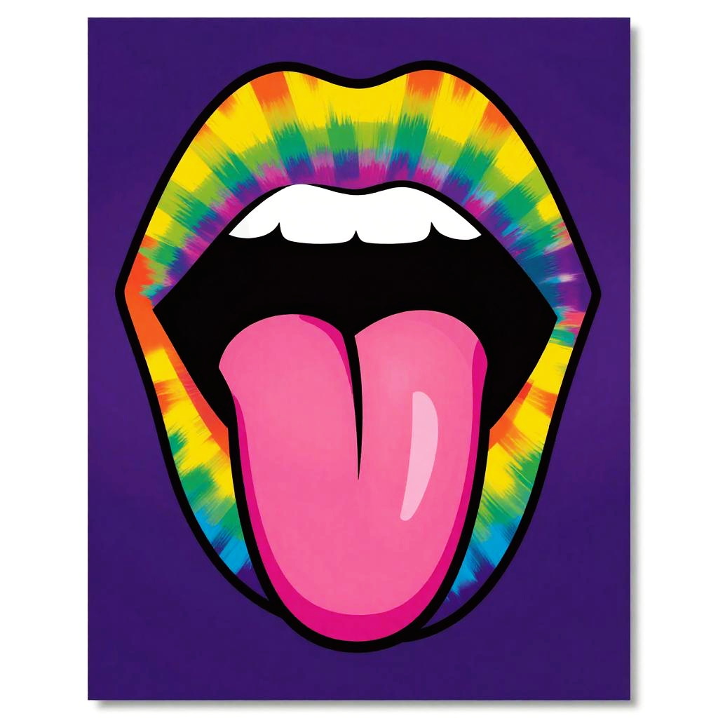 Pop Art Lips with Tongue and Circuit Pattern
