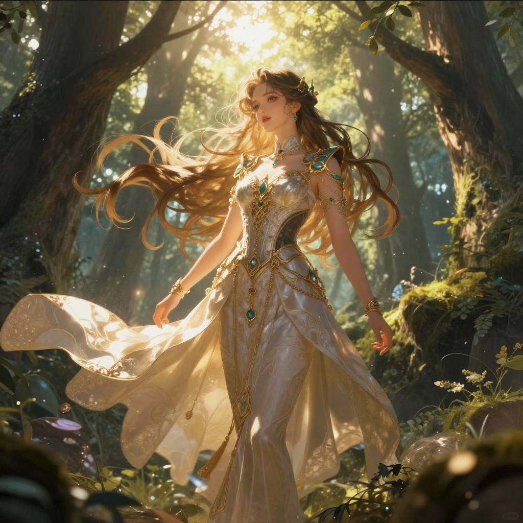 Blonde Witch in Mystical Forest