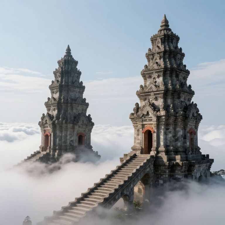 Ethereal Staircases Linking Ancient Towers