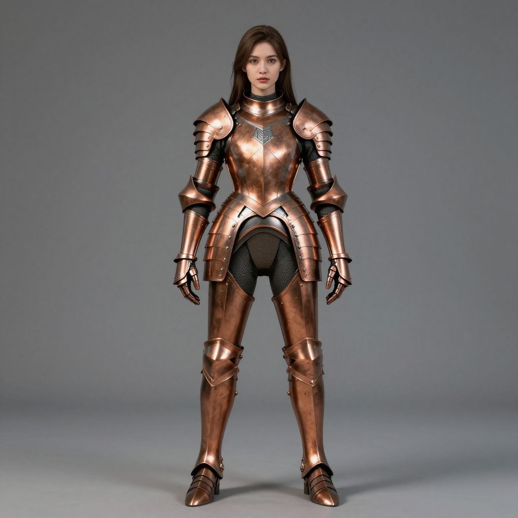 Masterpiece, best quality, 1girl, armorsuit, full body, looking at viewer, Copper armor