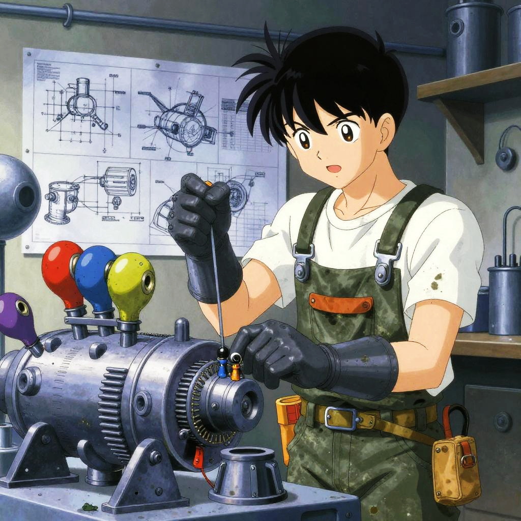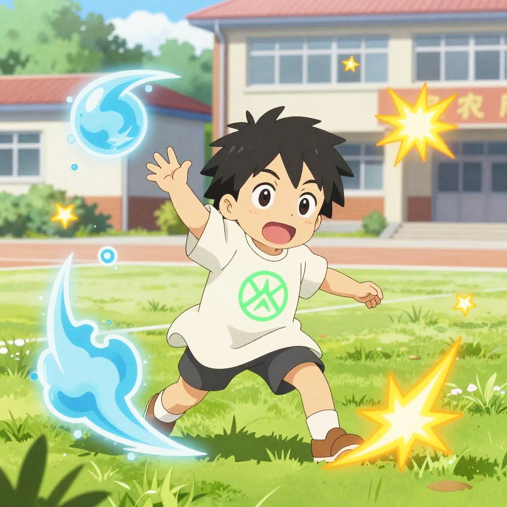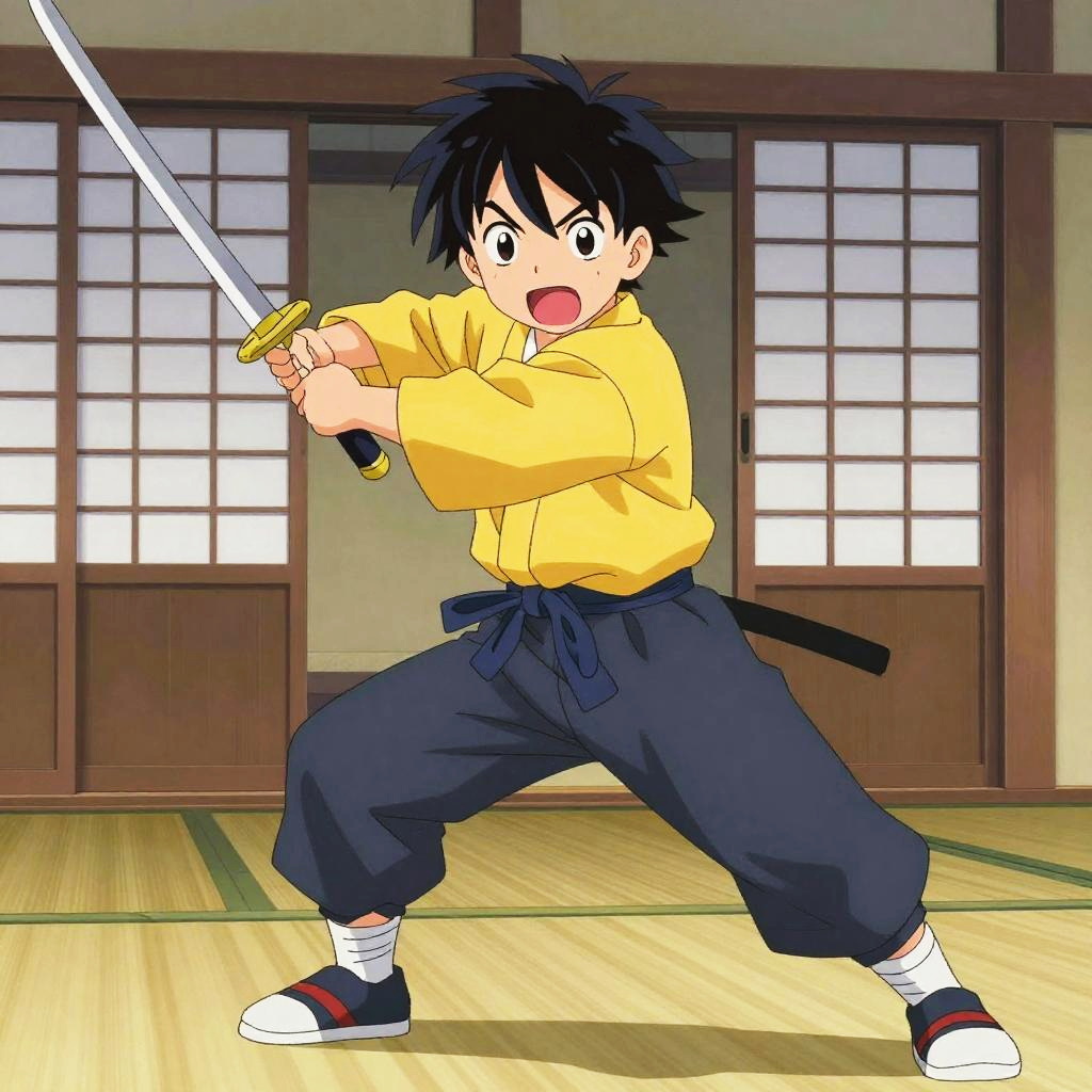 A jovial sake brewer spirit, wearing a loose festival happi coat covered in sake stains, engaged in celebrating with a comical drunken stumble, set in a rustic tavern near a bustling village square, illustrated in the humorous yet action-packed anime style of Hideaki Sorachi.
