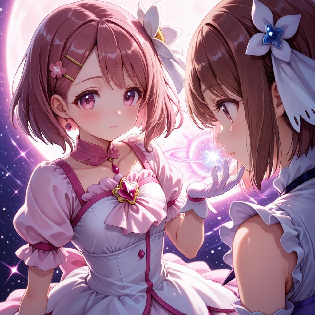 Hanadera nodoka, healin' good precure, 1girl, pink eyes, short hair, pink hair, brown hair, hair flower, hairclip, magical girl, magical girl, by artist yude, dark_illustrious