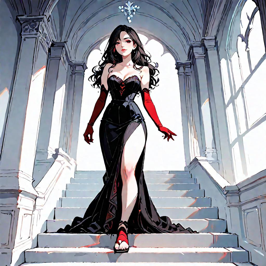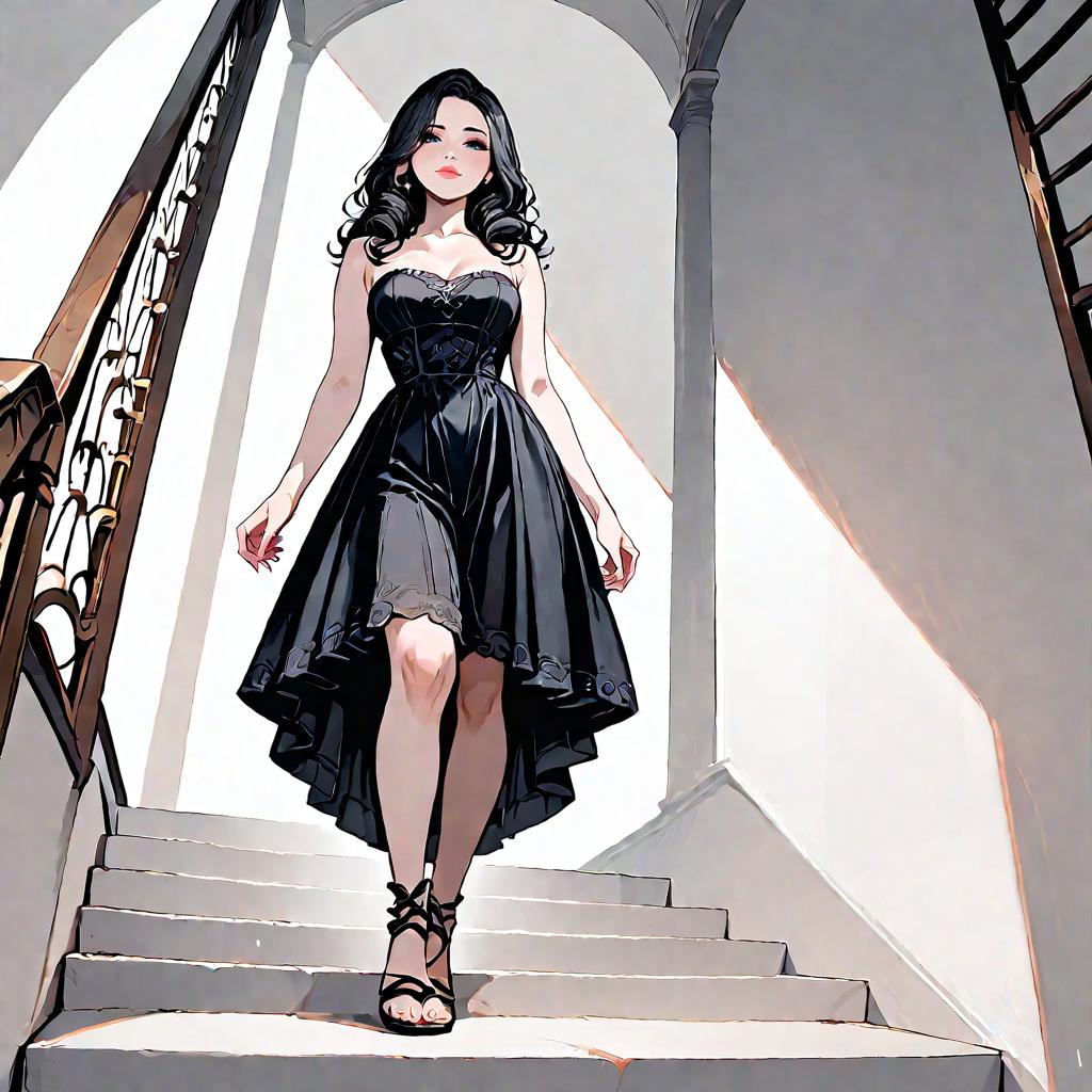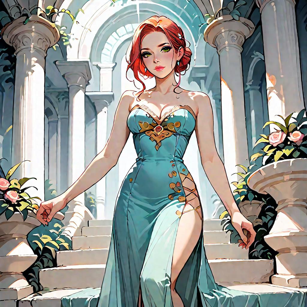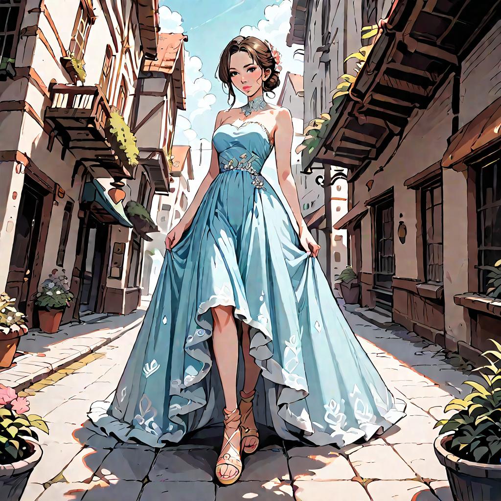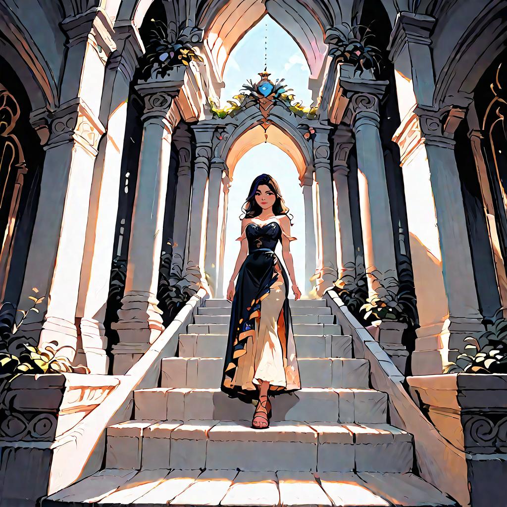 Woman in Strapless Maxi Dress on Mediterranean Staircase
