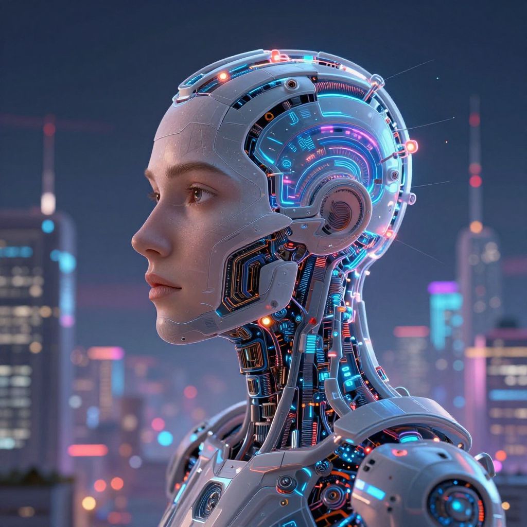 Midjourney AI drawing illustrating a surreal fusion of human imagination and machine intelligence crafting a dreamlike cityscape, vivid detail with glowing accents, blending fantasy and technology, colorful reflections, highly stylized and atmospheric.