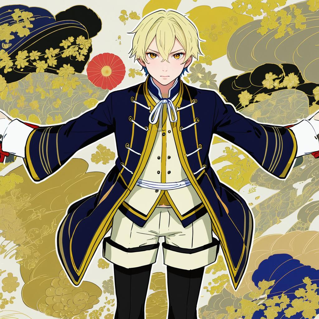 Monoyoshi sadamune, touken ranbu, 1boy, yellow eyes, blonde hair, pantyhose under shorts, lace-up boots, by artist suisogenshi, anime