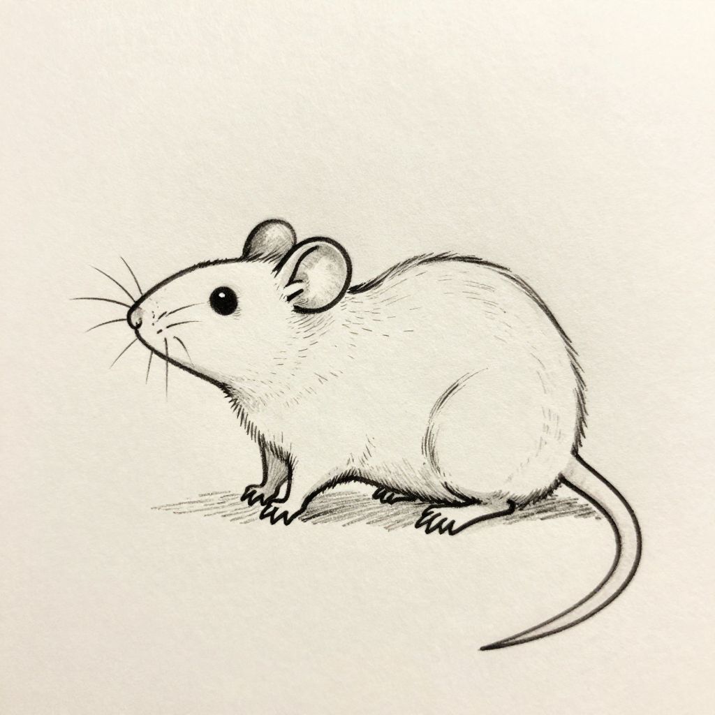 Rat sketch easy, simple and light ink sketch of a rat in side profile, delicate line work with minimal detail, capturing essence of rodent with a few strokes, perfect for quick art practice or educational illustration.
