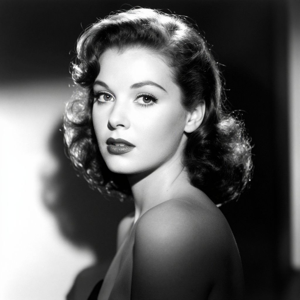 Melissa Rauch body portrayed with vintage Hollywood glamour, black and white portrait, dramatic shadows, classic makeup and hairstyle, timeless beauty and elegance