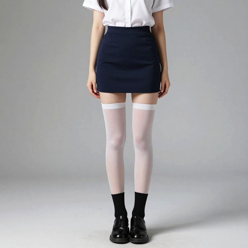 (8k, RAW photo, best quality, masterpiece:1.2), (realistic, photo-realistic:1.37), ultra-detailed, (detailed beautiful girl:1.4), 1 girl, full body shot, 1girl, (((arm behind))), ((cute face, long hair, full_body, (((navy micro mini skirt), high waist)), ((white panty)), school_uniform, white shirt, standing, (black socks), white panty, (black shoes)))