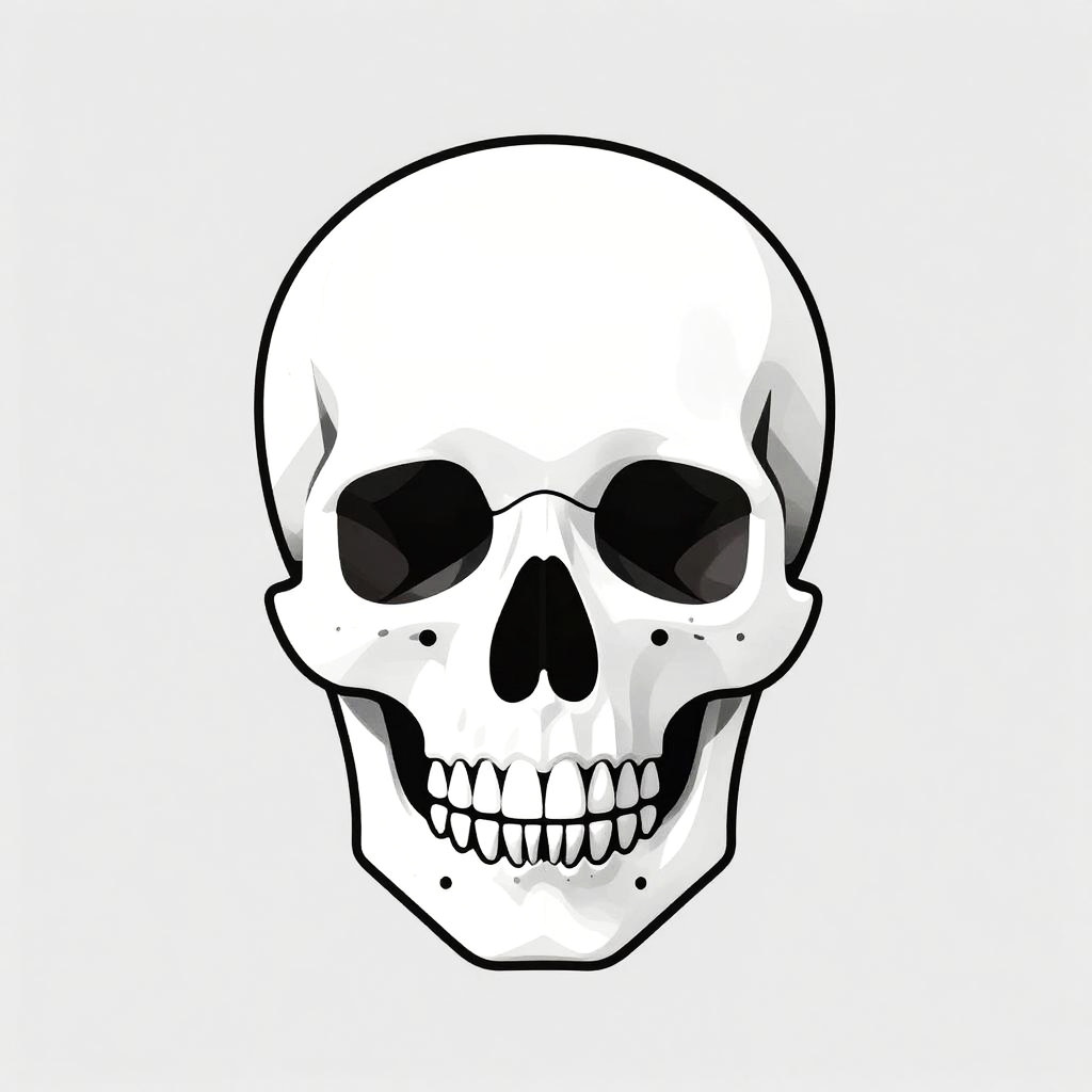 Front facing skull, minimalist vector art, bold black and white contrast, geometric shapes, modern design
