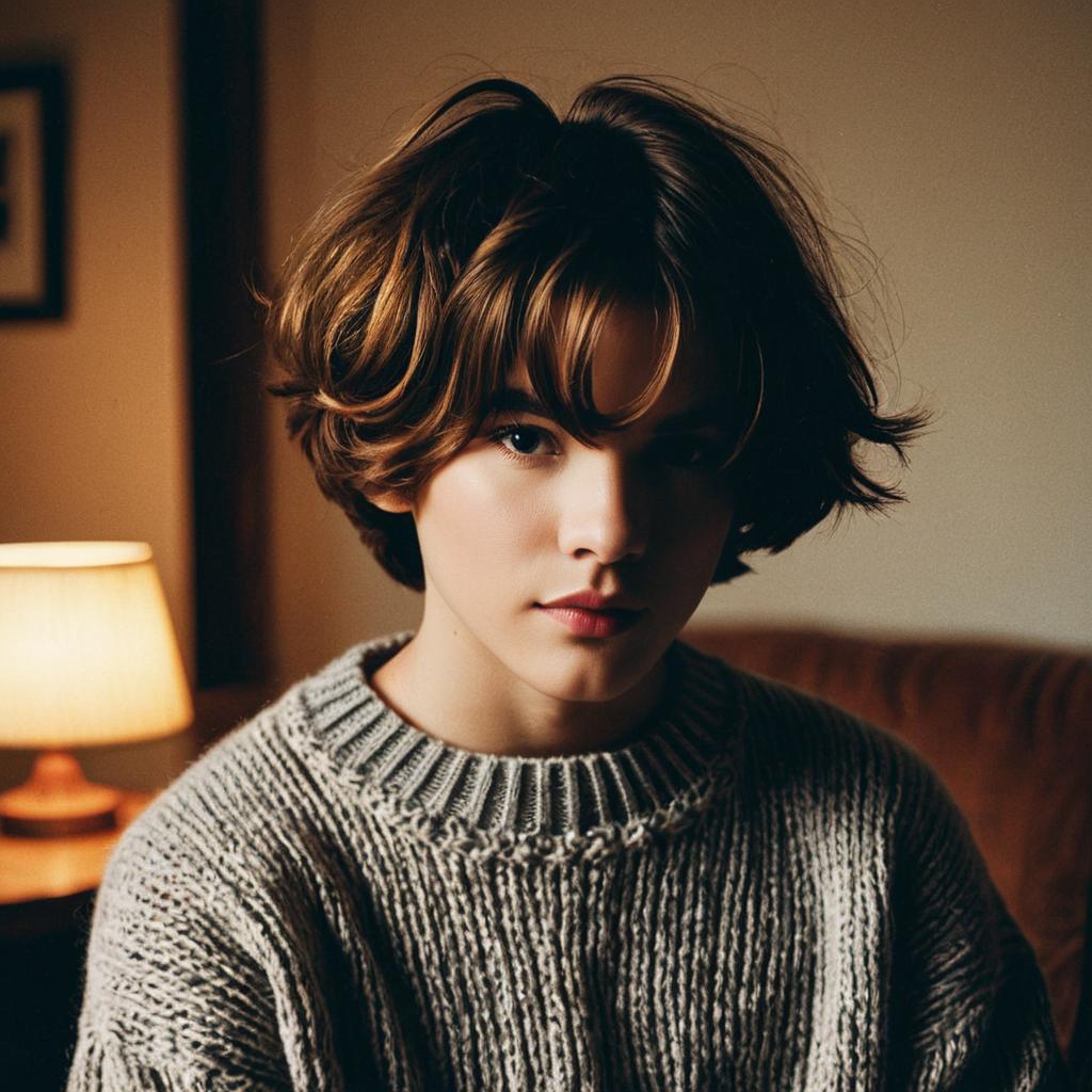 Teenage Girl with Layered Bob Hairstyle in Denim Jacket