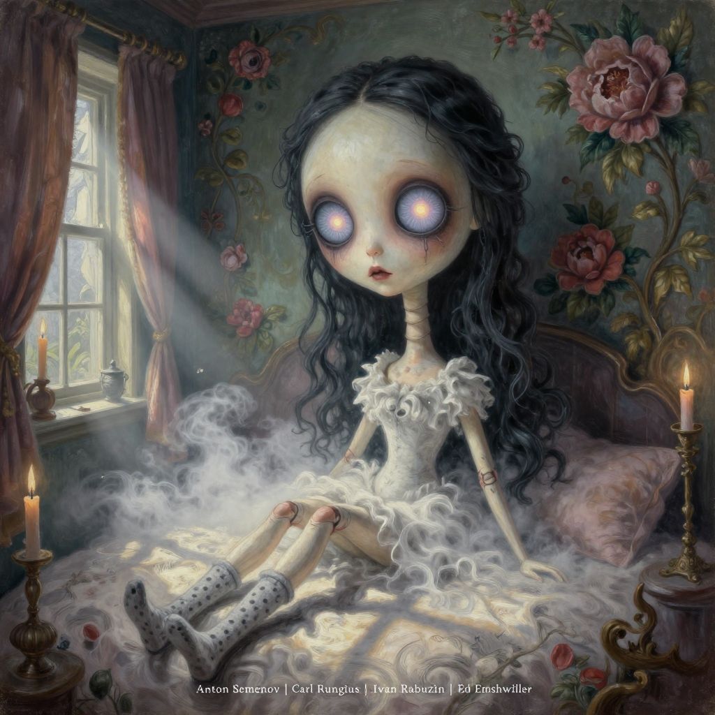 Surreal Gothic Doll in Rococo Glow