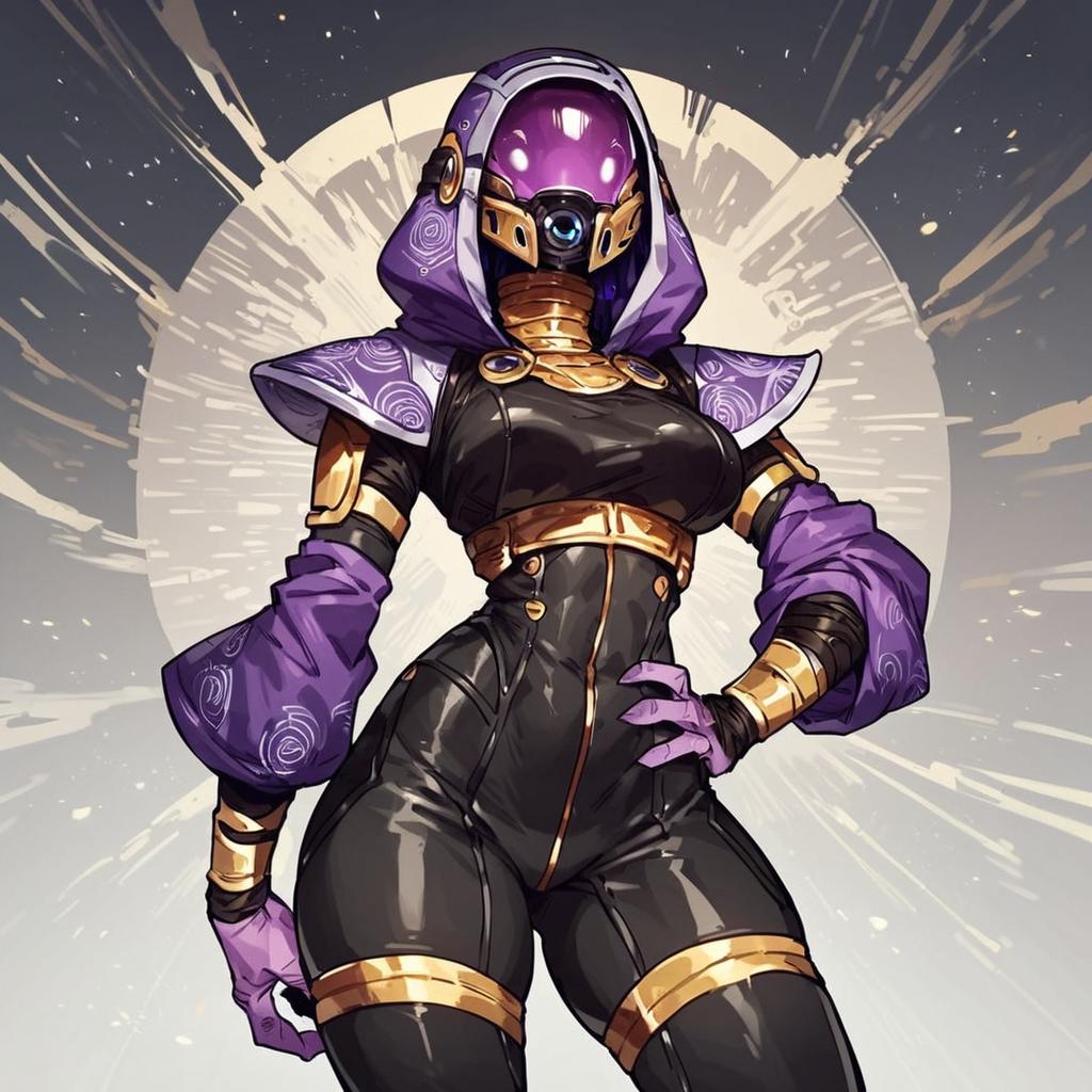 Score_9, score_8_up, score_7_up, score_6_up, score_5_up, score_4_up, source_furry, by aqe, tali, tali'zorah, alien, alien humanoid, humanoid, quarian, 3 fingers, armor, black clothing, bodysuit, clothed, clothing, female, fingers, headgear, helmet, hood, not furry, detailed background, spacecraft, skinsuit, solo, tight clothing, hand on hip, pose, pinup, wide hips, medium breasts