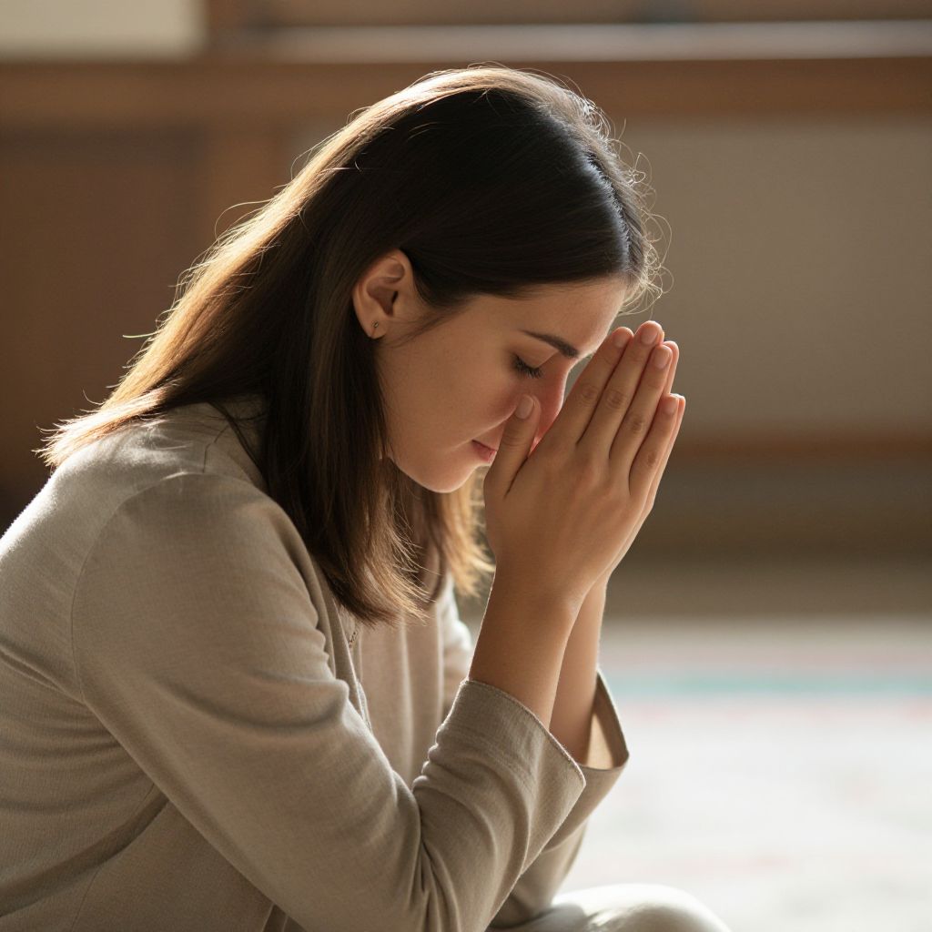 Woman Praying in Sunlight