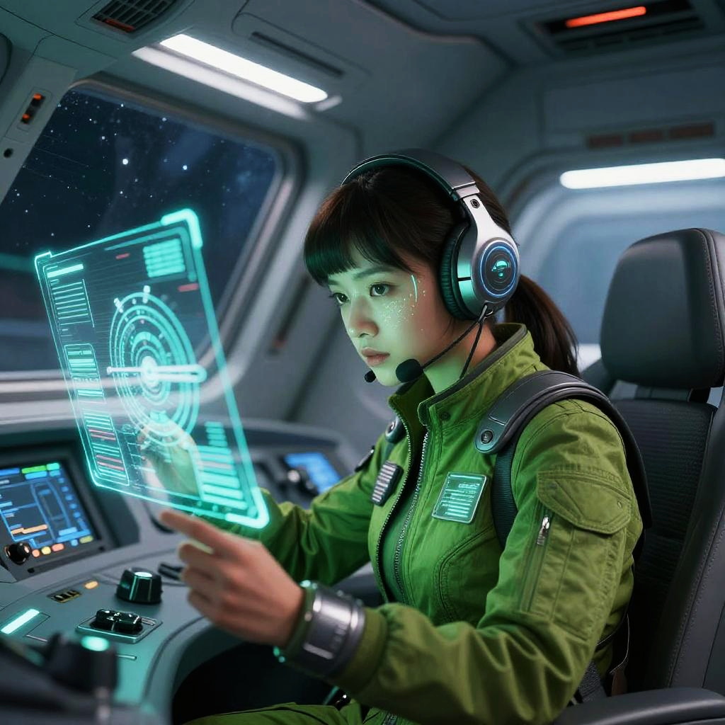 Green Orion Pilot in Futuristic Cockpit