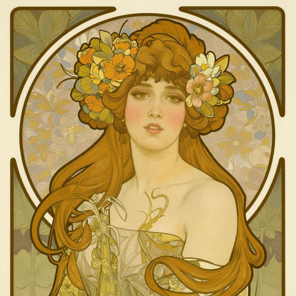 Art Nouveau Woman with Floral Hair