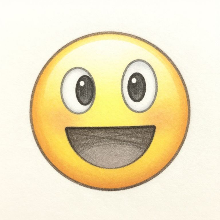 Sketch emoji with expressive hand-drawn style, featuring a big smiling face and playful eyes, set against a light textured paper background, with soft pencil strokes and subtle shading, capturing a fun and whimsical mood.