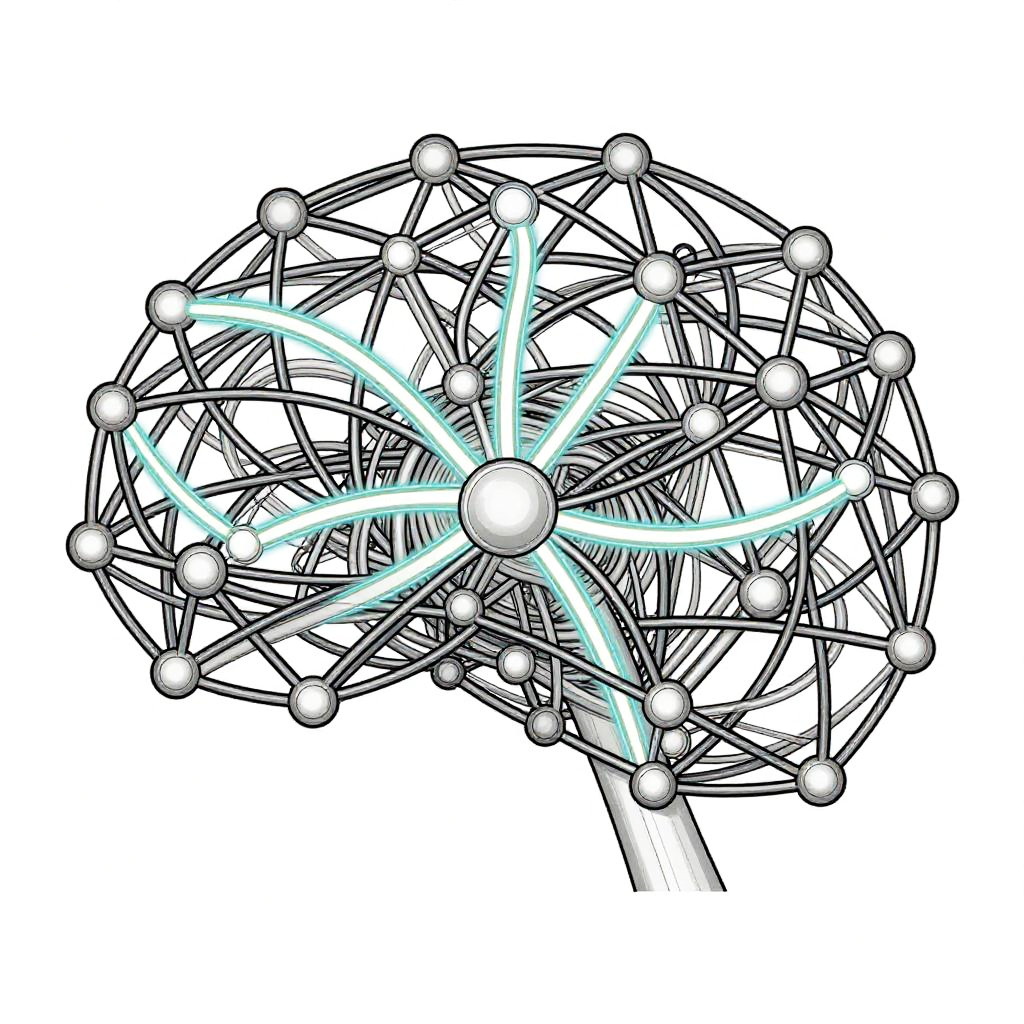 AI coloring page illustrating an abstract interpretation of AI neural networks with interconnected nodes and glowing pathways, rendered in crisp outlines for coloring, blending technology with artistic expression in a modern style.