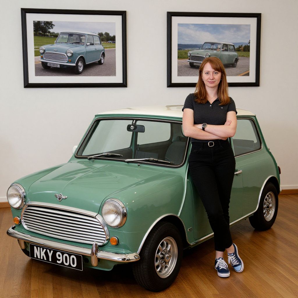 Confident Woman with Classic Mini Cooper