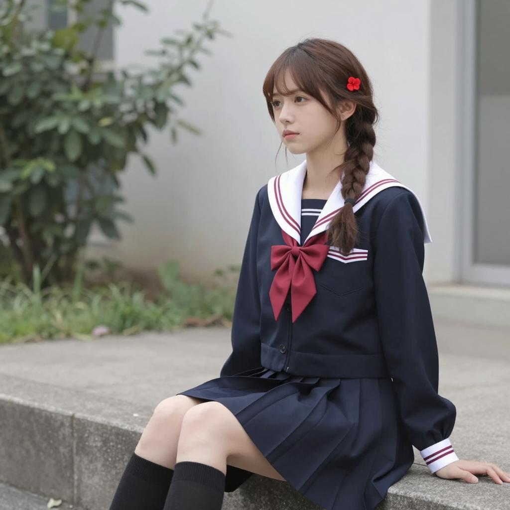 Calm Asian Schoolgirl Amidst Cherry Blossoms