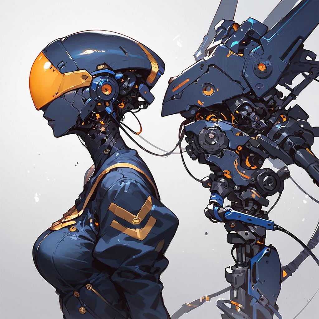 Score_9, source_anime, solo, female robot with a lot of wires in it's body and head and arms, looking away, from side, wire, machinery, laboratory