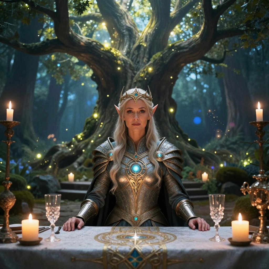 Elven Noble Reception Under Glowing Tree