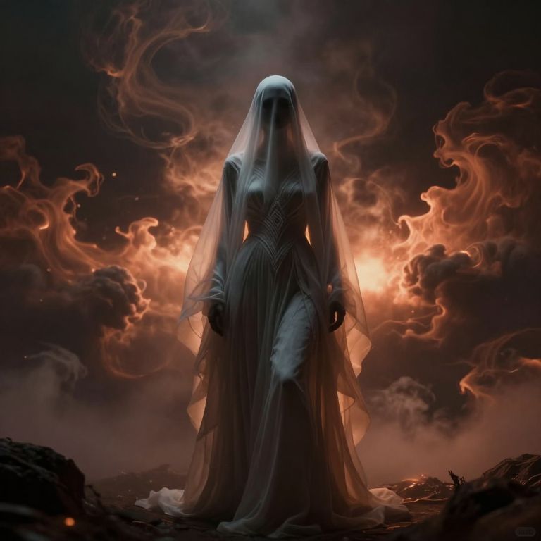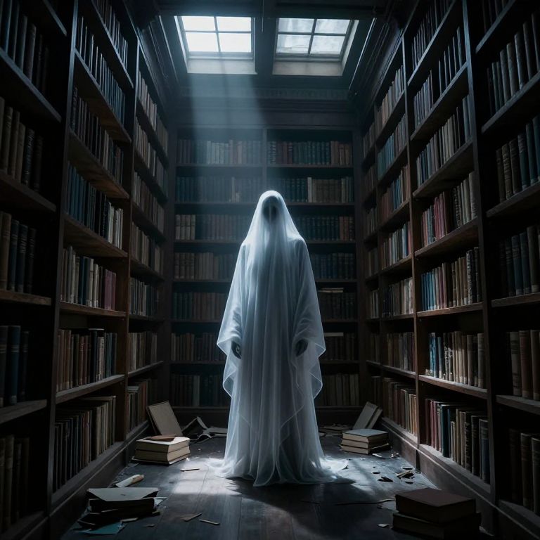 Ghostly Figure in Dimly Lit Library