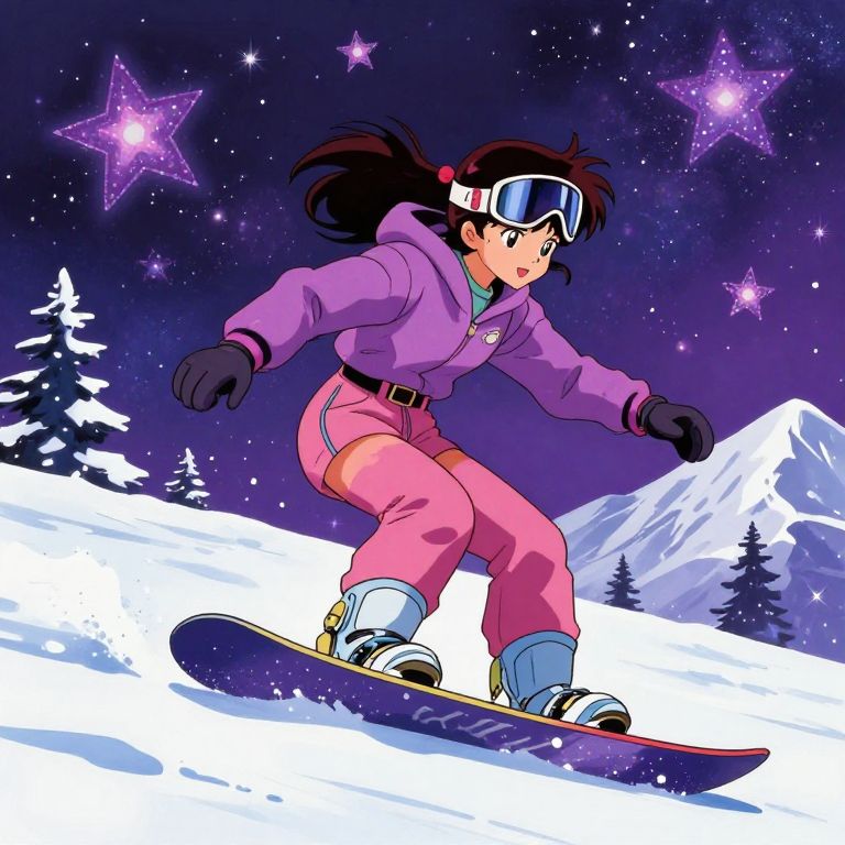 1990s Anime Girl Snowboarding Galaxy