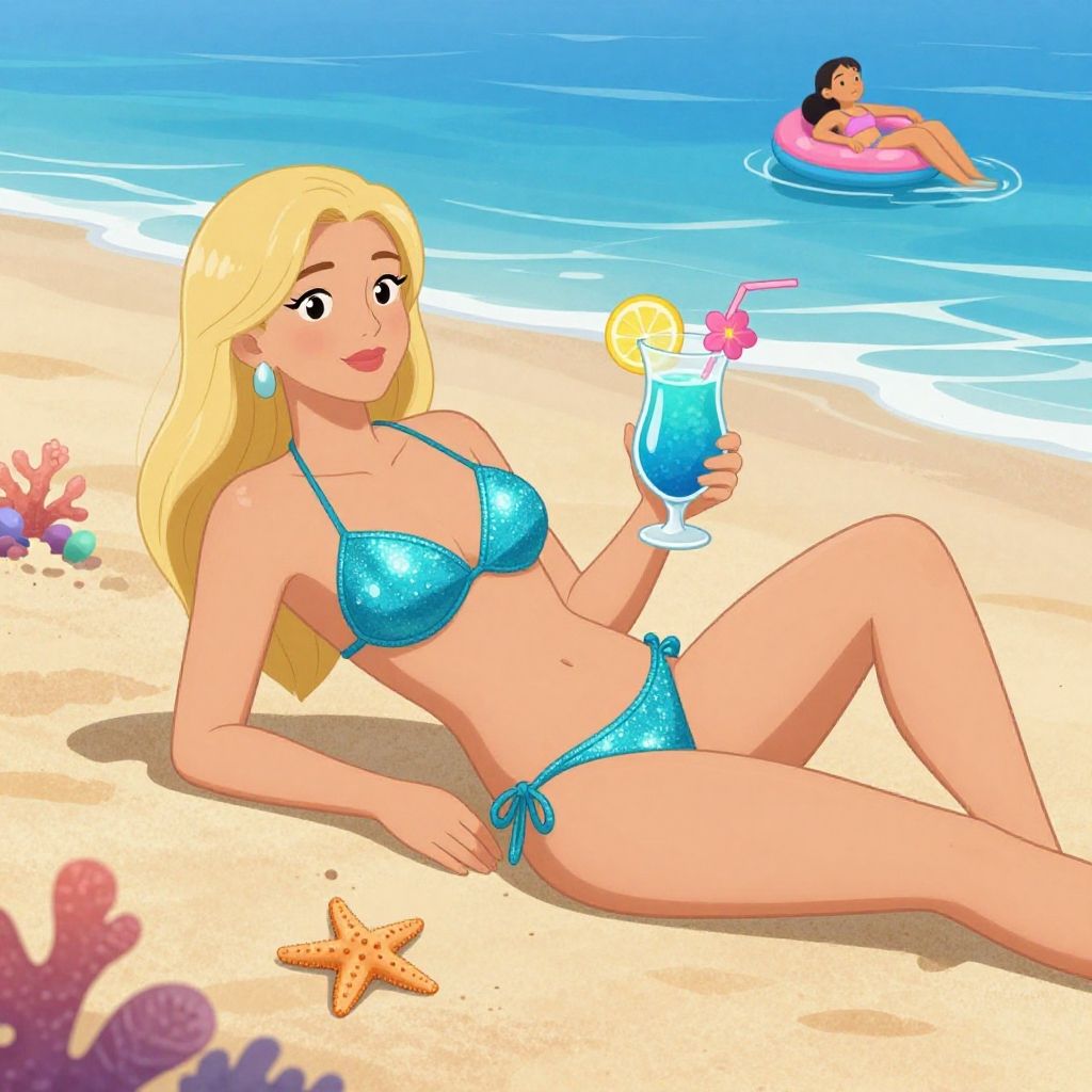 Tropical Poolside Relaxation Illustration