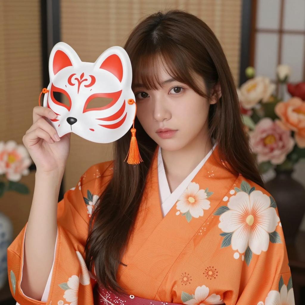 Mysterious Asian Woman in Fox Mask