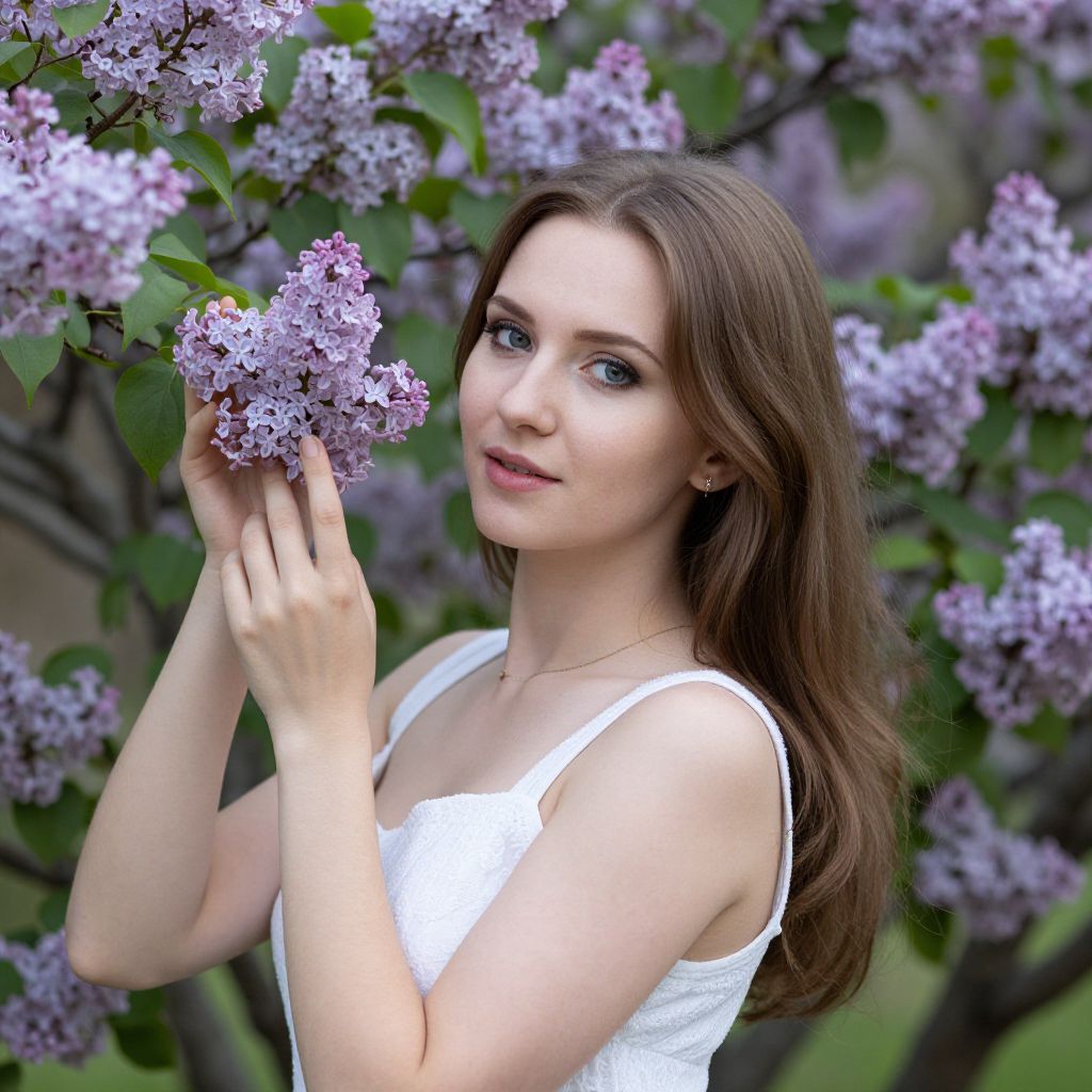 Russian Model in Spring Lilac Park