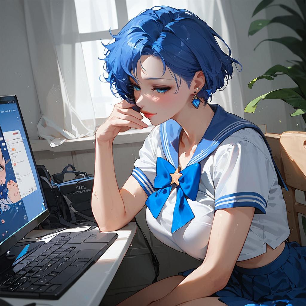 Sailor Mercury Working on Computer