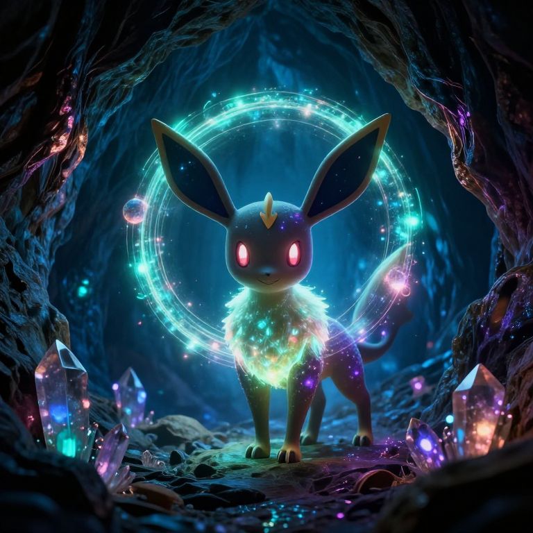 Bioluminescent Umbreon in Enchanted Cave