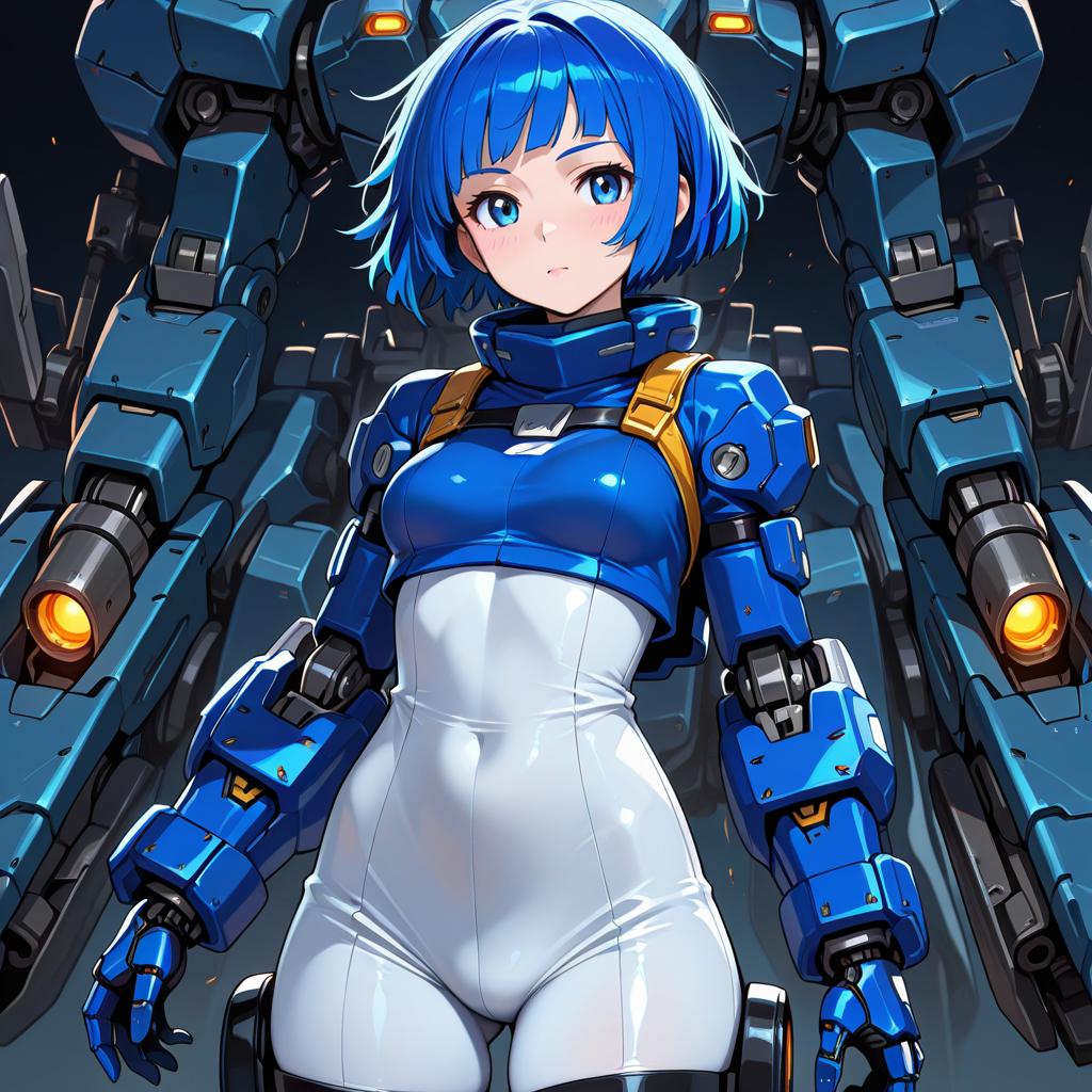 Futuristic Mecha Girl With Blue Hair