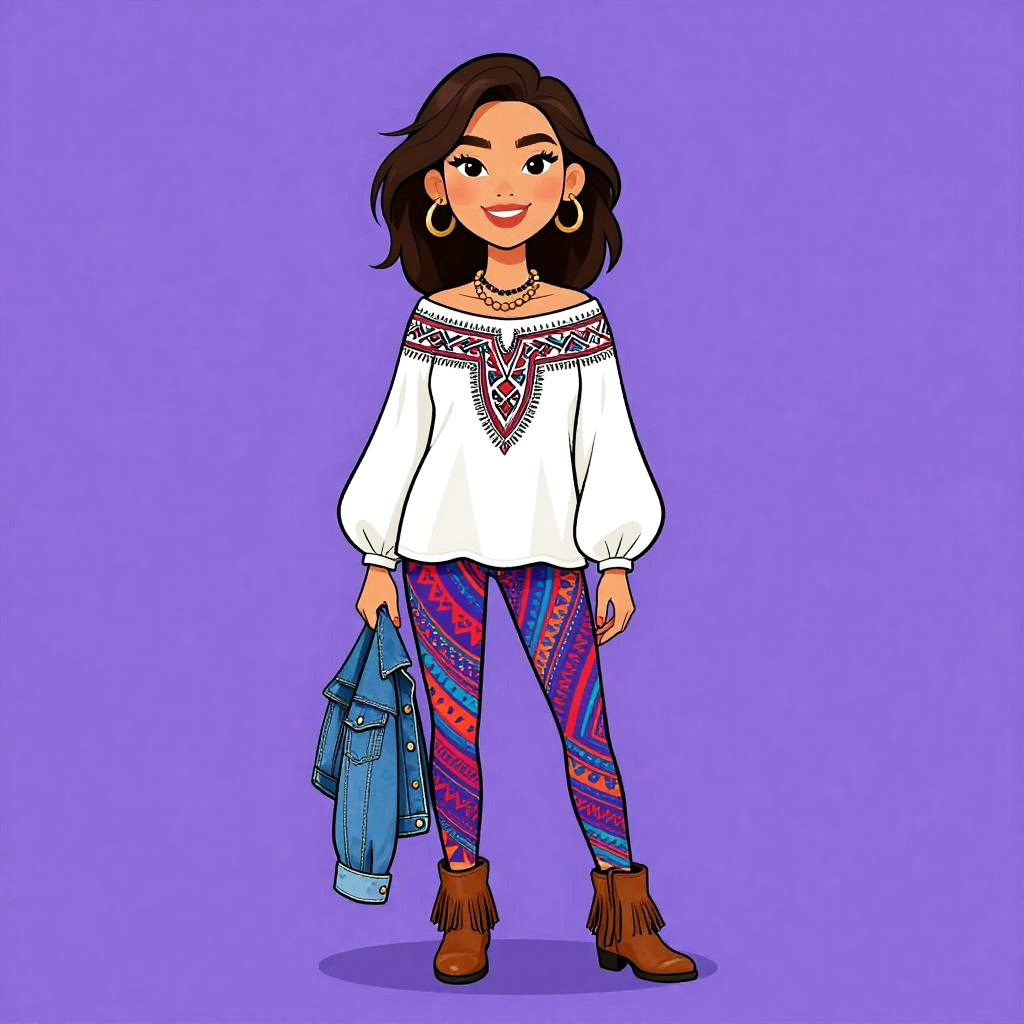 Bohemian Woman in Paisley Top