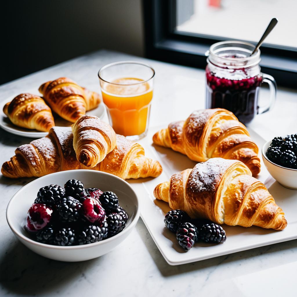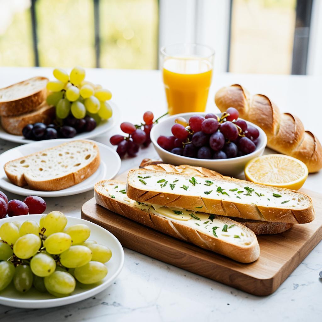 White Balance photograph of a happy and colorful breakfast spread featuring a variety of french toast, maple syrup, raspberries, bright and bold colors to create a lively atmosphere. Studio lighting with a sharp focus 100mm F1.2 lens creating dramatic side lighting.