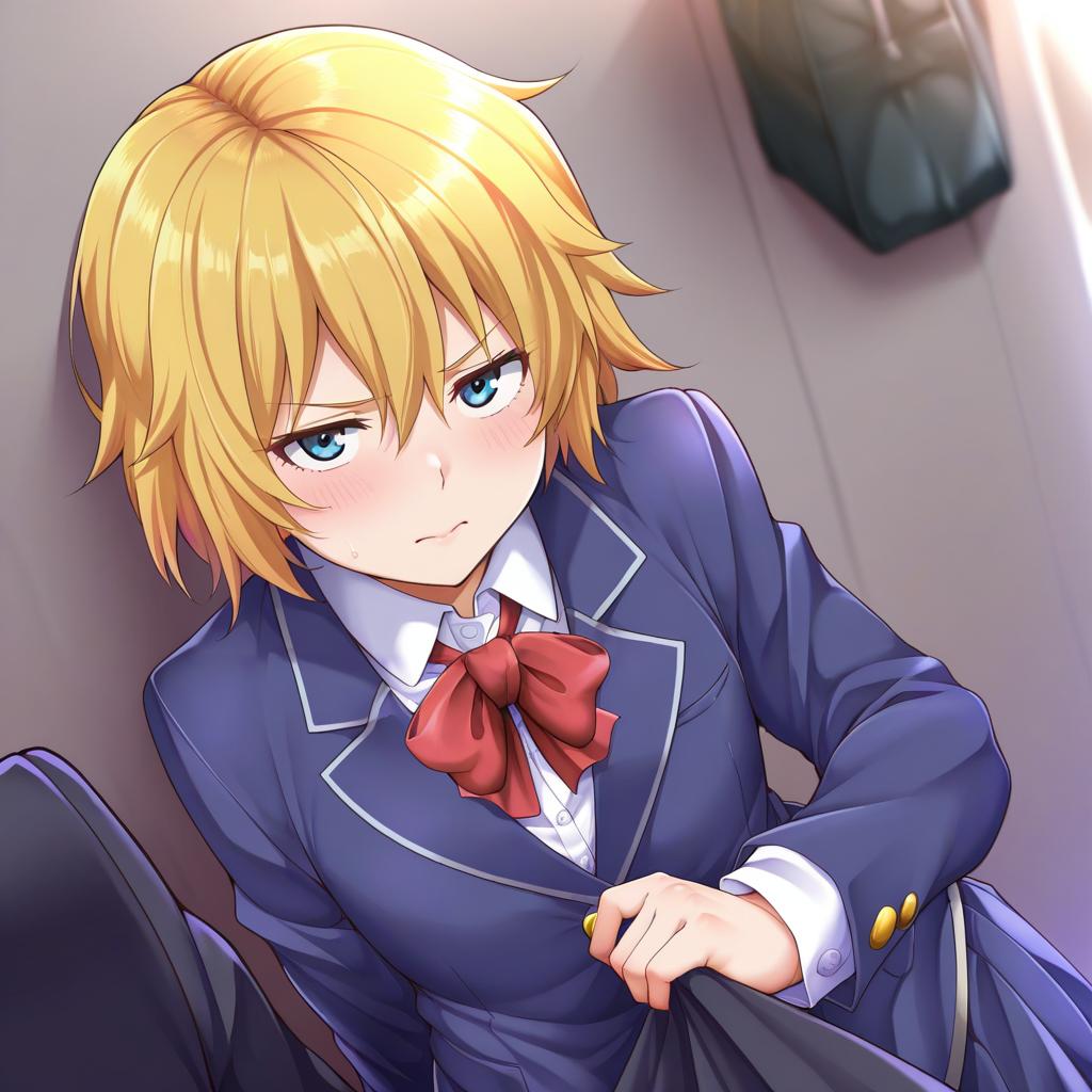 Hanazawa teruki, mob psycho 100, 1boy, blue eyes, short hair, blonde hair, school uniform, collared shirt, school uniform, long sleeves, blazer, by artist wacchi, leet