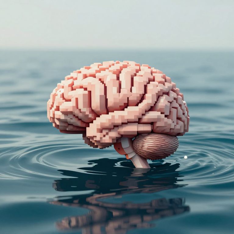 Pixel A chained brain emerging from the ocean, very detailed, Photography, Photoshoot, professionnal color grading, soft shadows, natural light, no contrast, clean sharp focus, film photography,
