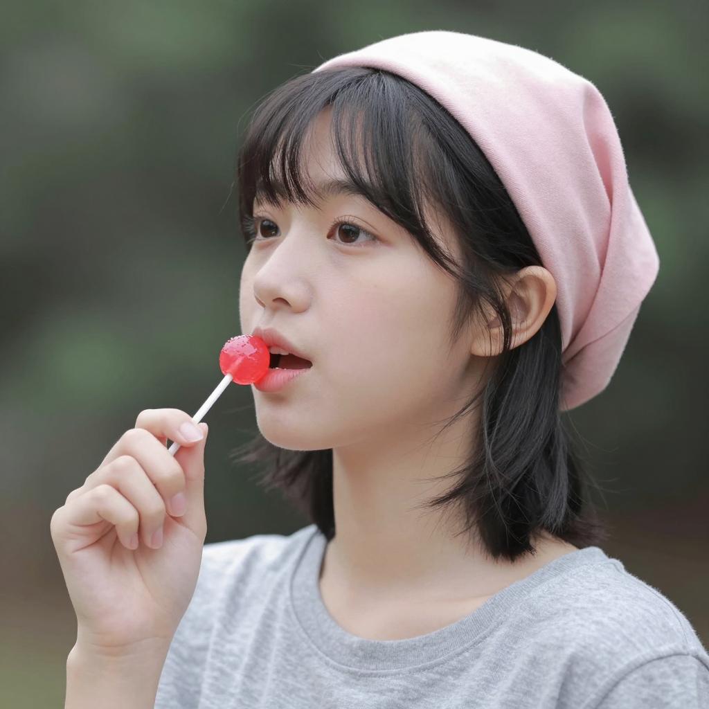 Playful Character with Pink Bob and Red Top