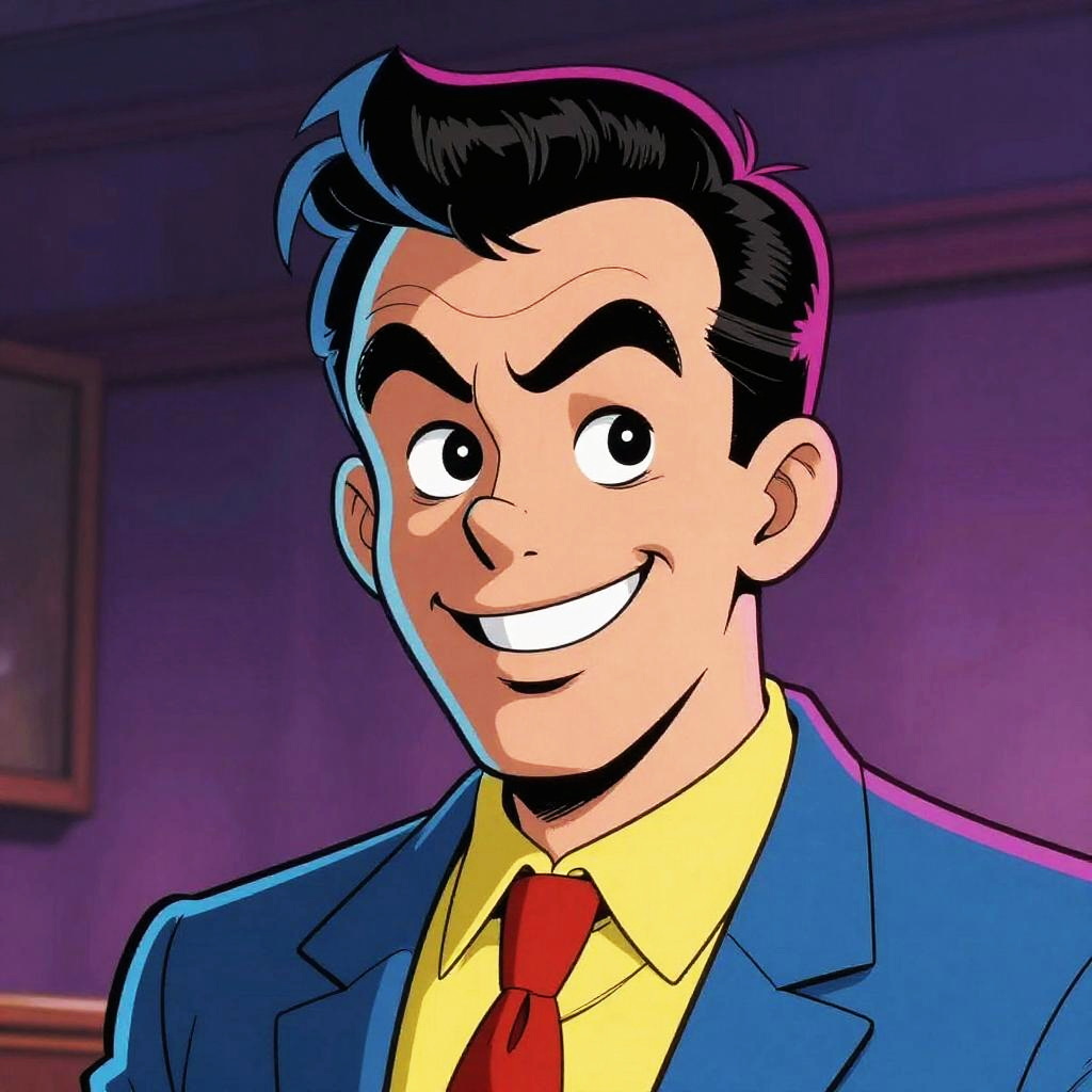 Alfred e. neuman images, stylized pop culture icon portrait, neon color highlights, cheeky demeanor, retro comic book aesthetic, bold outlines with high detail