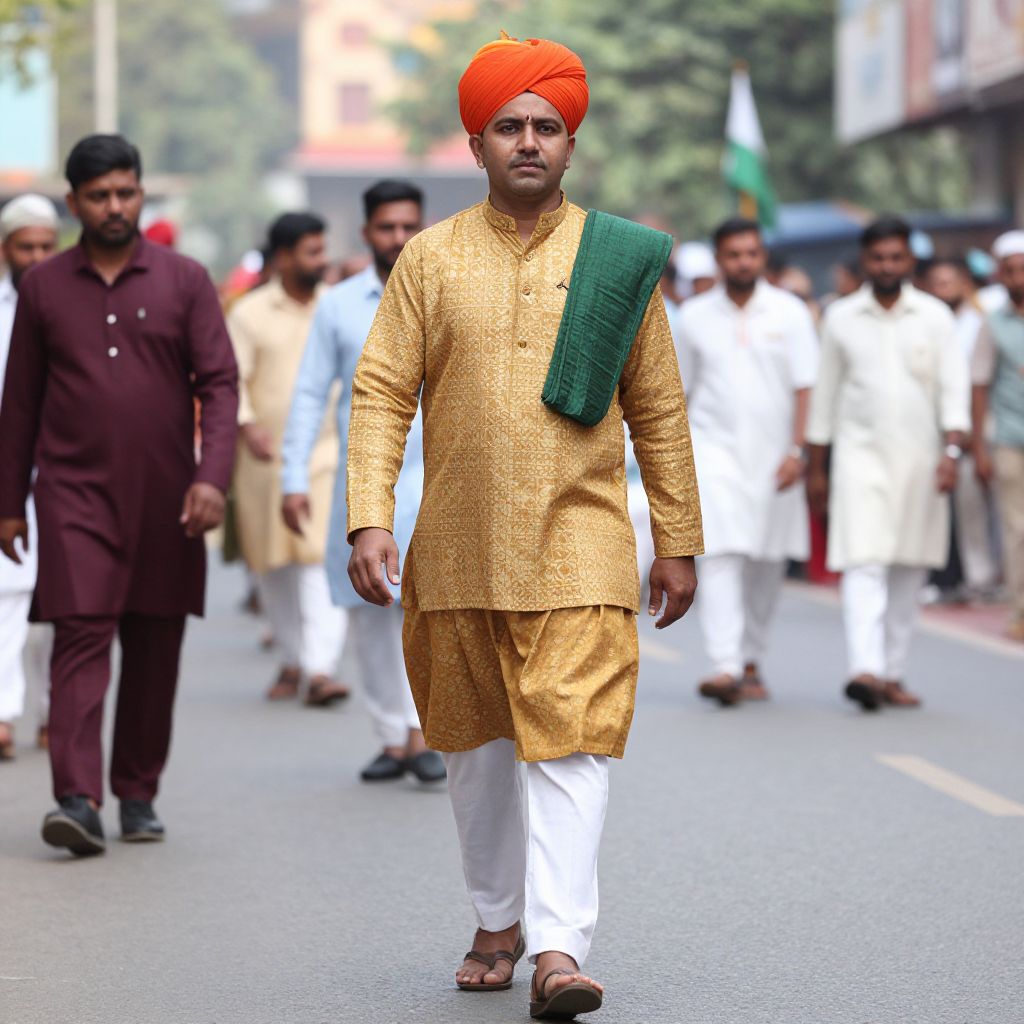 Republic Day Costume, dressed in a traditional costume walking down a street