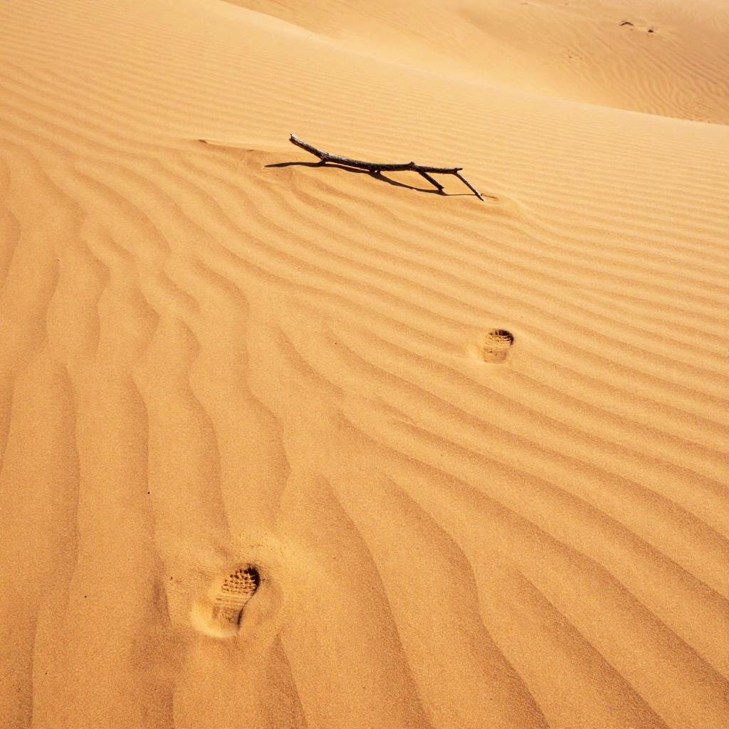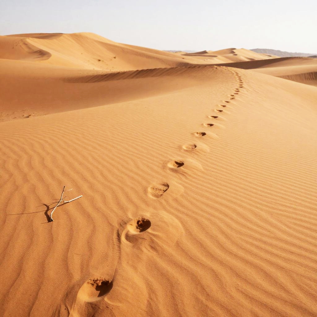 Sunlit Desert with Footprints