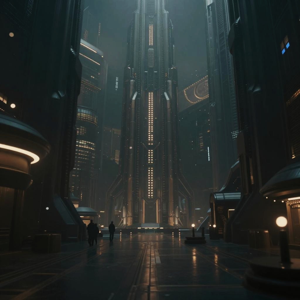 Cinematic film still, a city, a dystopian future, year 3000, sci fi, amazing details, dark atmosphere, shallow depth of field, vignette, highly detailed, high budget, bokeh, cinemascope, moody, epic, gorgeous, film