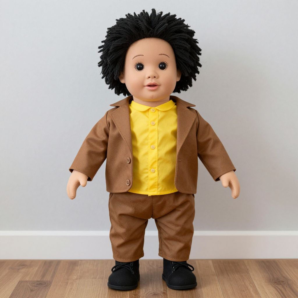 Rag Doll Costume Adult, doll with a yellow shirt and a brown jacket